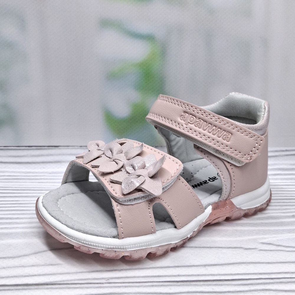 Детские сандалии для девочки ТМ Apawwa — практичная и комфортная модель для тёплого сезона. Выполнены в нежном розовом цвете, имеют открытый носок и закрытую пятку, что обеспечивает баланс между вентиляцией и надёжной фиксацией стопы. Кожаная стелька с супинатором поддерживает стопу, а удобные липучки позволяют быстро обуваться и регулировать посадку. Отличный вариант для ежедневных прогулок и активного отдыха.