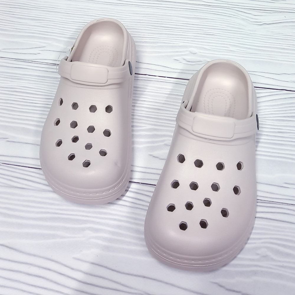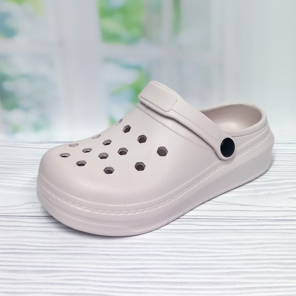 Детские кроксы для девочки тм "Прогрес" цвет: бежевый. Перфорированный верх улучшает вентиляцию стопы, перекидной задник-лямка надёжно фиксирует обувь на ноге.