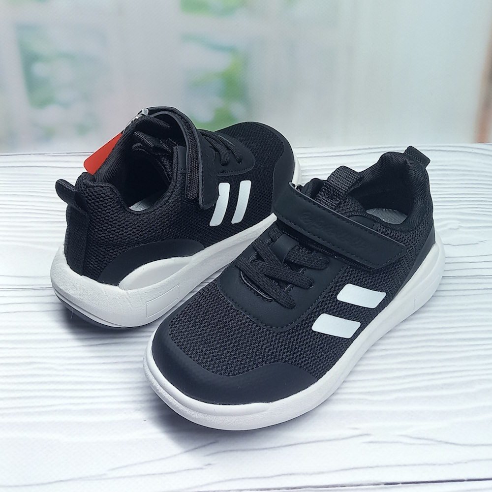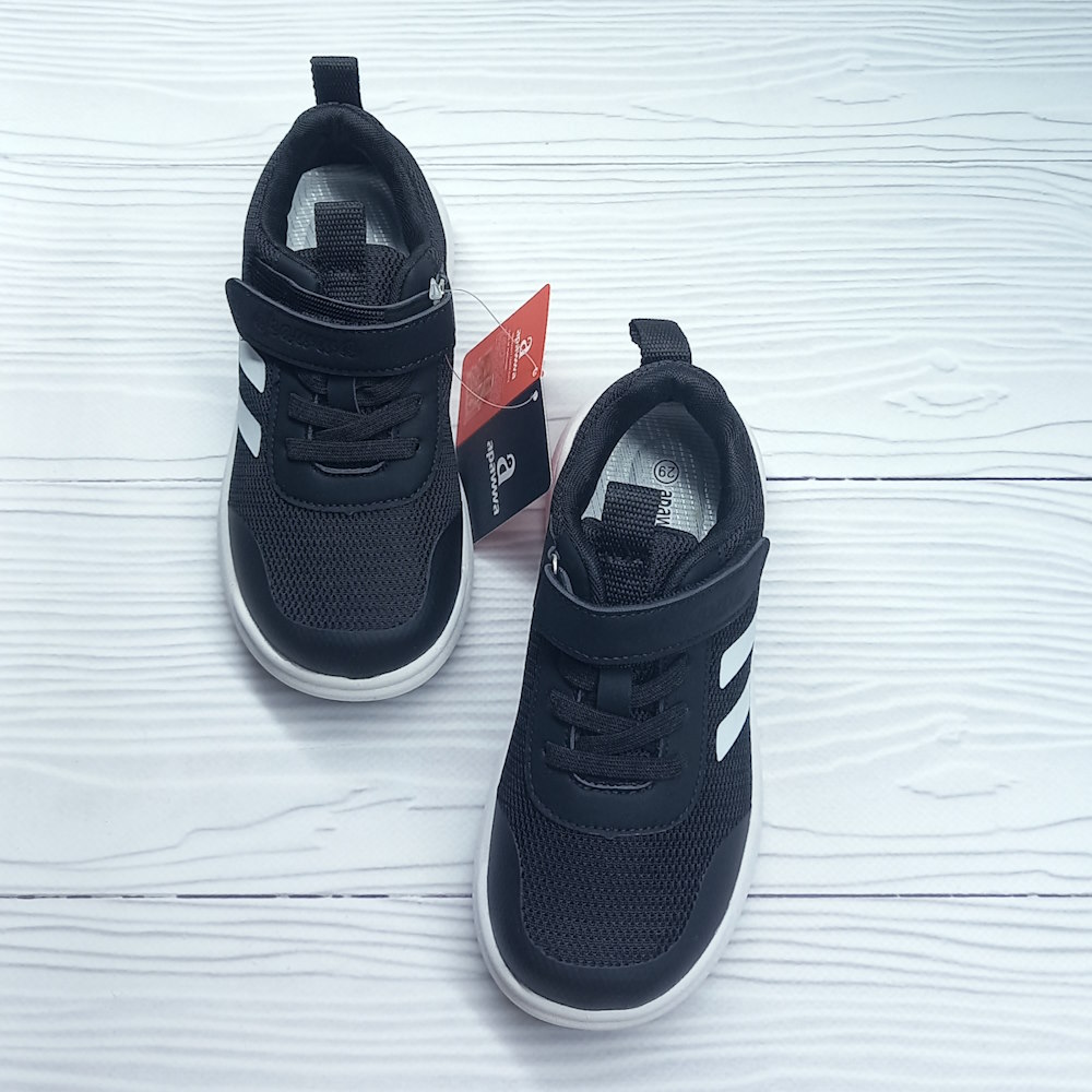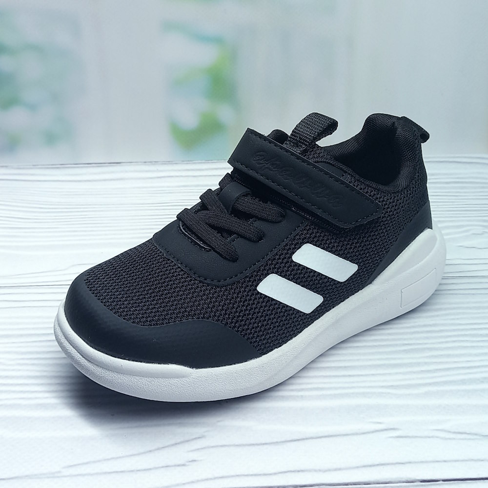 Модель выполнена из прочной дышащей сетки в универсальном чёрном цвете. Застёжки на липучках обеспечивают простоту и удобство обувания. Лёгкая белая подошва из пены смягчает шаги, снижая нагрузку при беге и играх. Текстильная стелька с супинатором способствует правильному положению стопы.