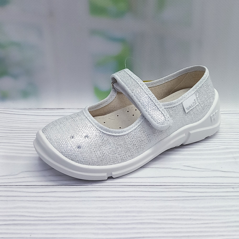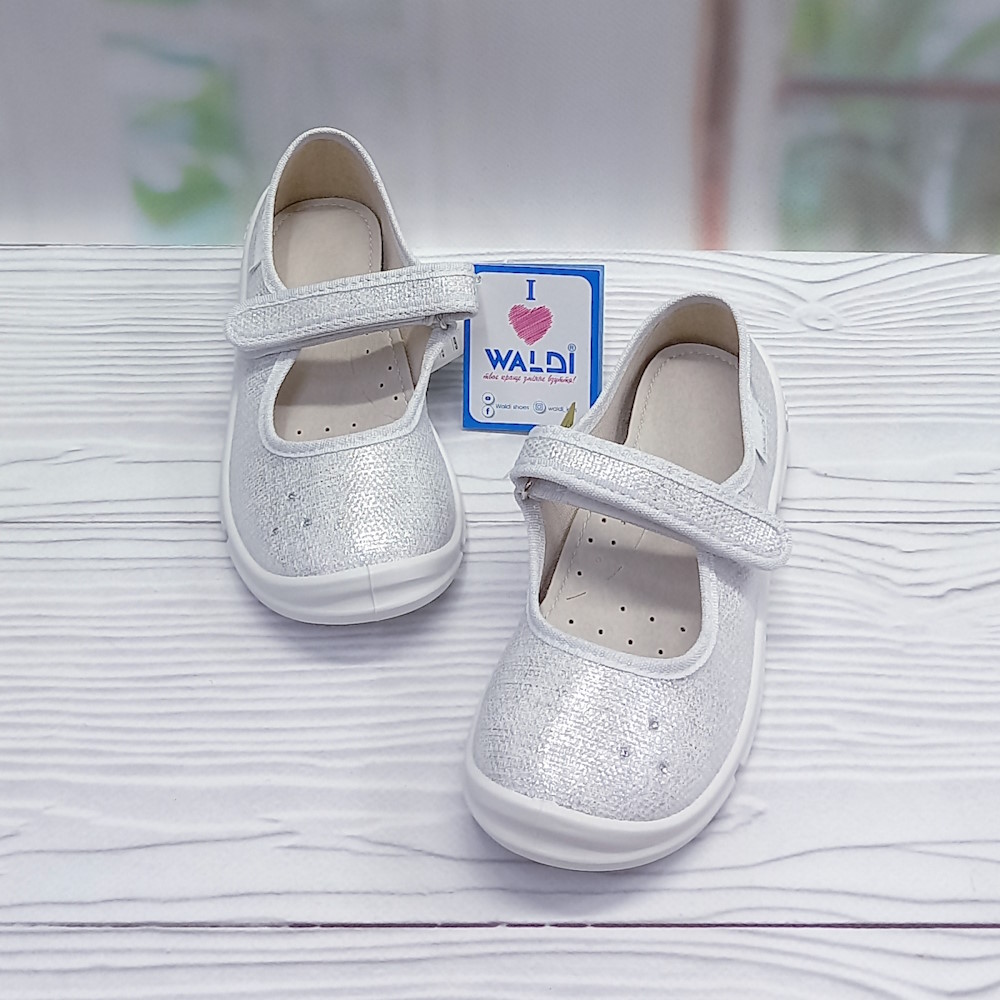 🥿 Текстильные тапочки для девочек ТМ Waldi — лёгкая и удобная сменная обувь для школы, садика или дома. Верх выполнен из качественного дышащего текстиля. Надёжные застёжки на липучках обеспечивают удобство при надевании и фиксации. Жёсткий задник и кожаная стелька с супинатором способствуют правильной поддержке стопы. Гибкая белая подошва из ПВХ обеспечивает устойчивость и комфорт при ходьбе.