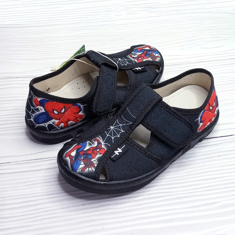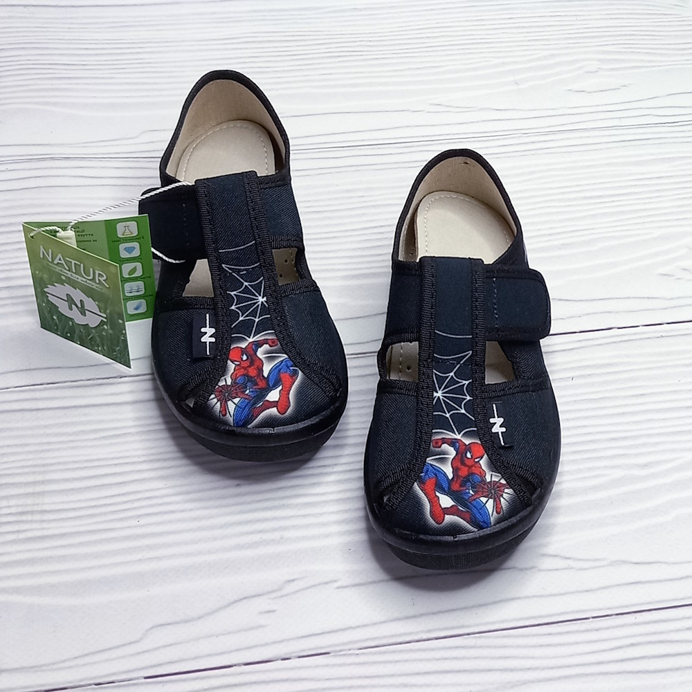 Детские комнатные тапочки для мальчика, тм Natur с застёжками на качественных липучках. Стильный принт с мультяшным персонадем. Кожаная стелька, супинатор, твёрдый задник, гибкая подошва. Хорошо подходят для садика.