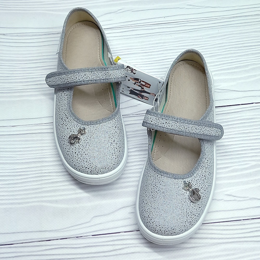 Сірий колір робить модель універсальною та практичною, а підвіска у вигляді кішки додає чарівний акцент. Застібки на якісних липучках забезпечують легкість і надійність фіксації. Шкіряна устілка з супінатором дарує комфорт під час ходьби, а біла гнучка підошва — легкість рухів. Чудовий вибір для дому та школи.