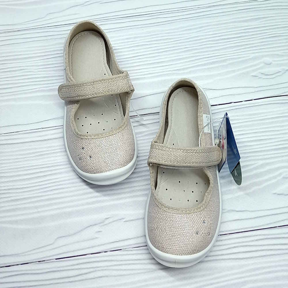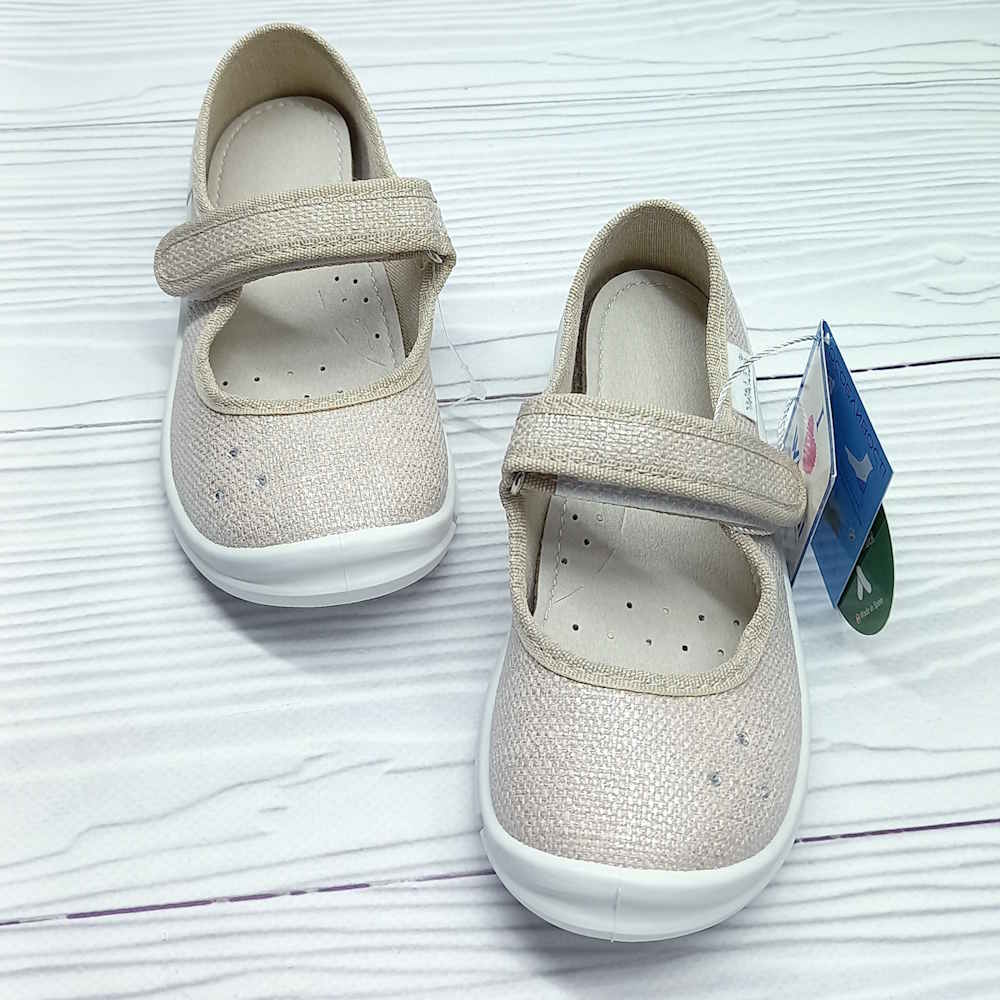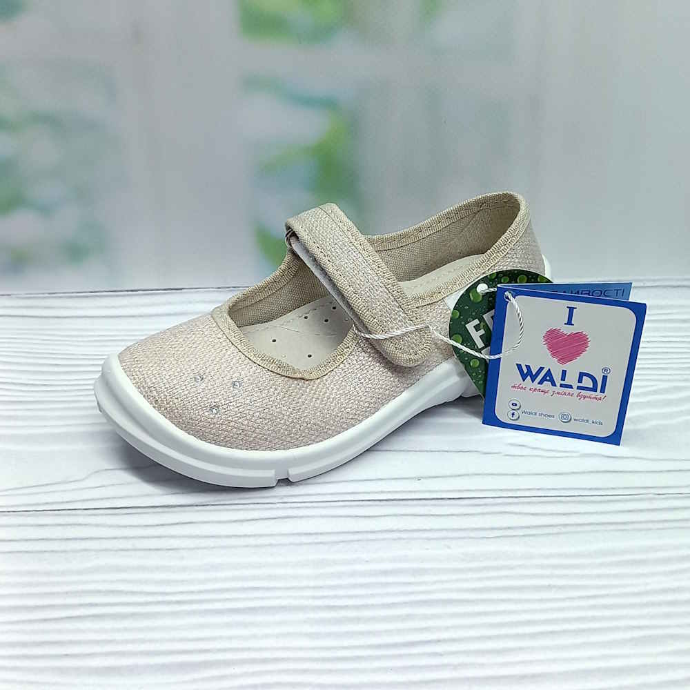 - Детские текстильные тапочки Waldi для девочки р.26-31 арт.35743 бежевые украшены стразиками