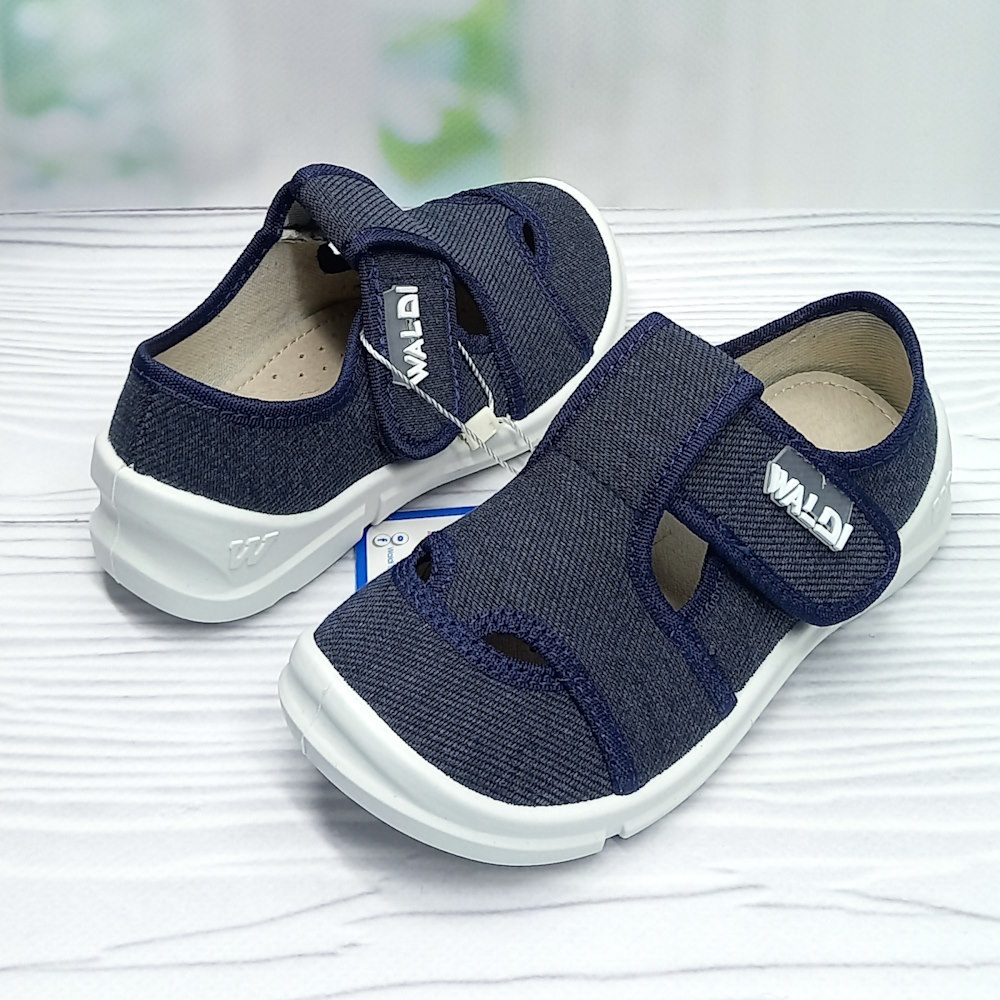 Детские текстильные тапочки ТМ Waldi для мальчика — комфортная и практичная обувь для дома, школы или детского сада. Модель выполнена в синем цвете и отлично подходит для ежедневного использования.
