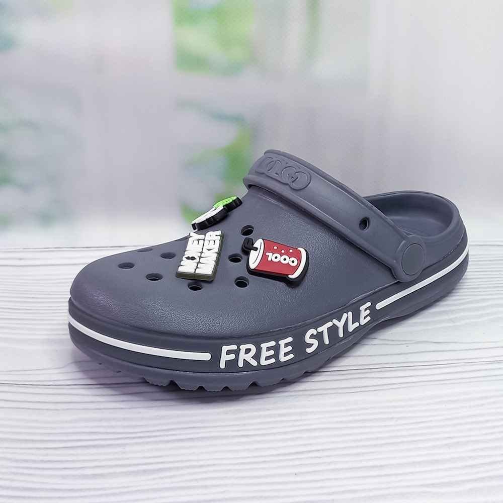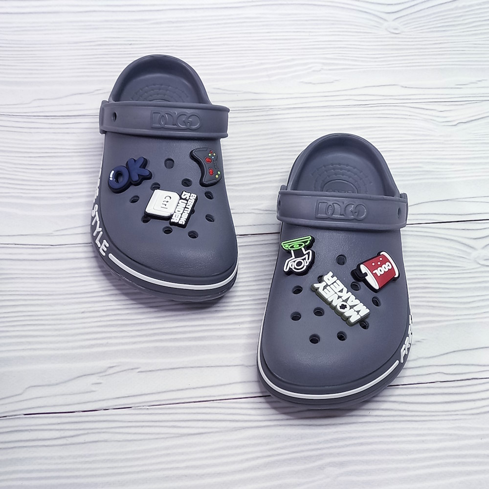Детские кроксы тм Даго Стиль для мальчика. Перфорированный верх улучшает вентиляцию стопы, перекидной задник-лямка надёжно фиксирует обувь на ноге, стильные джибитсы.