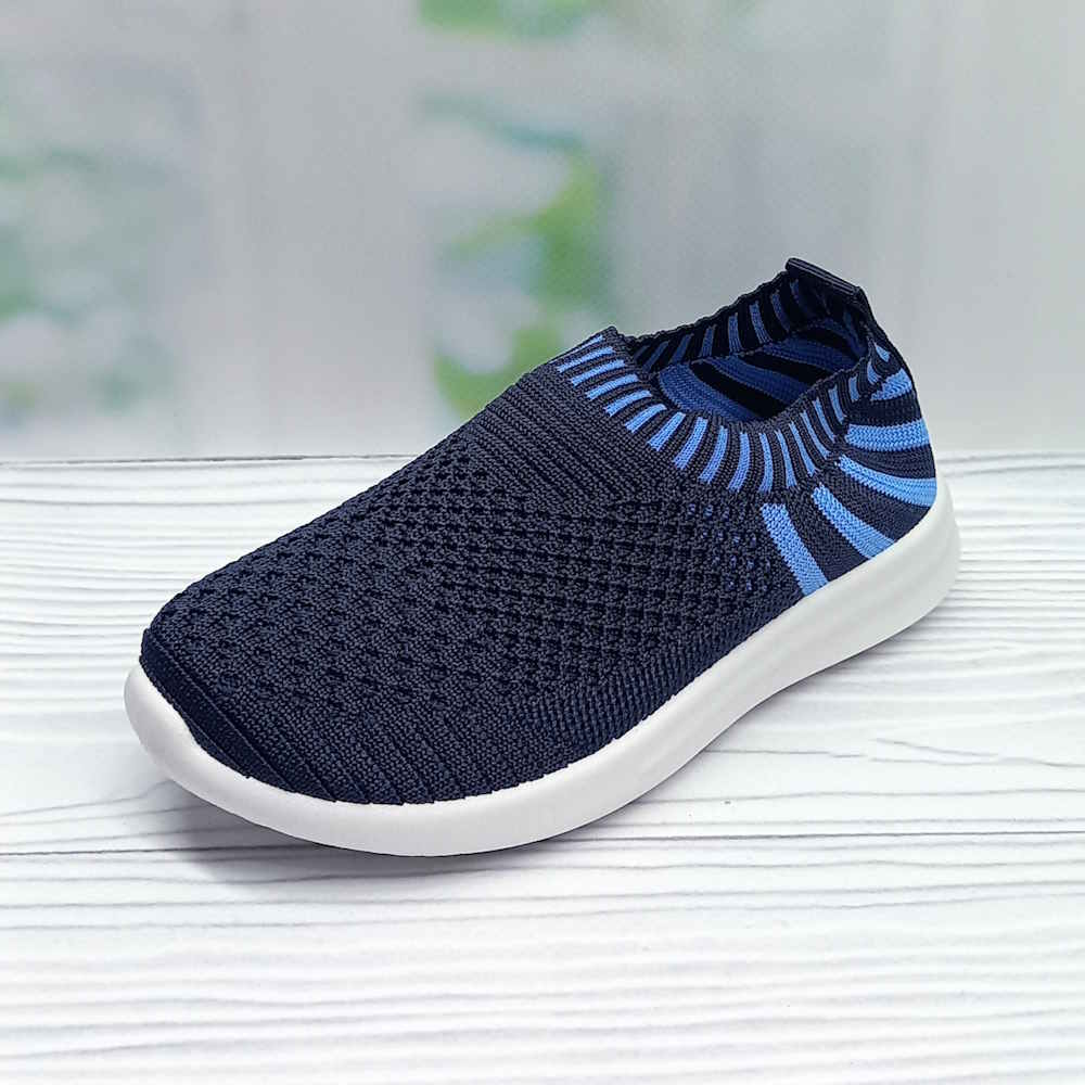 Модель выполнена в синем цвете из лёгкой текстильной сетки, которая отлично пропускает воздух. Белая подошва из пены сочетает в себе прочность, гибкость и лёгкость, а текстильная стелька добавляет комфорта. Удобная и универсальная обувь для прогулок, игр и занятий спортом.