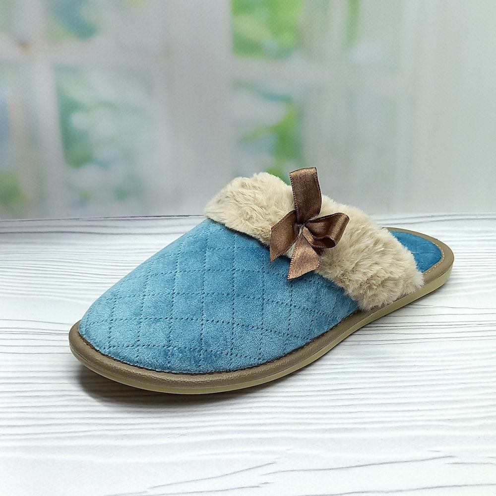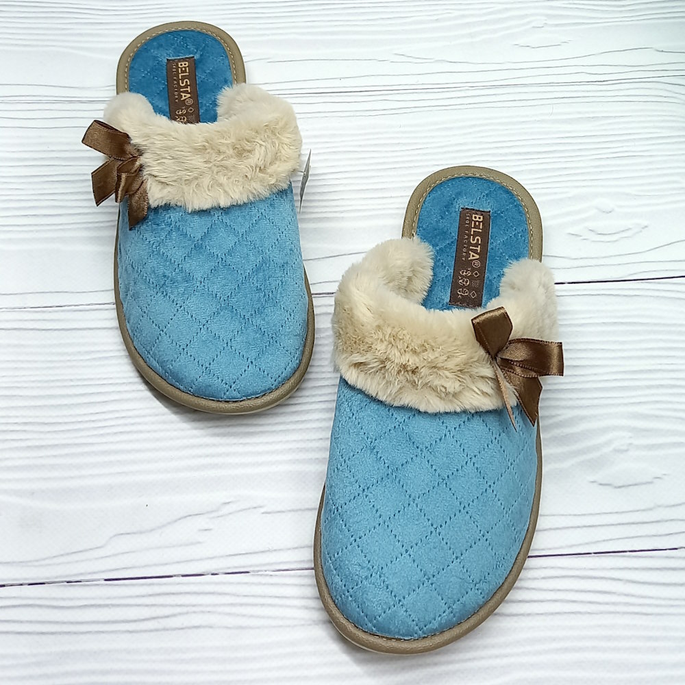 - Женские комнатные тапочки Белста р.36-41 арт.36233 закрытые атласный бантик пушок бирюзовые