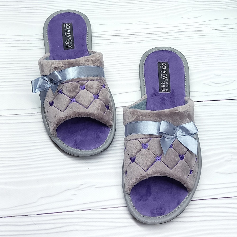 - Женские комнатные тапочки открытые Белста р.36-41 арт.36242 атласный бантик фиолетовые