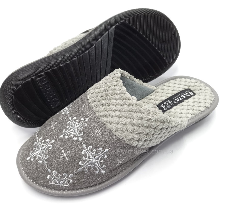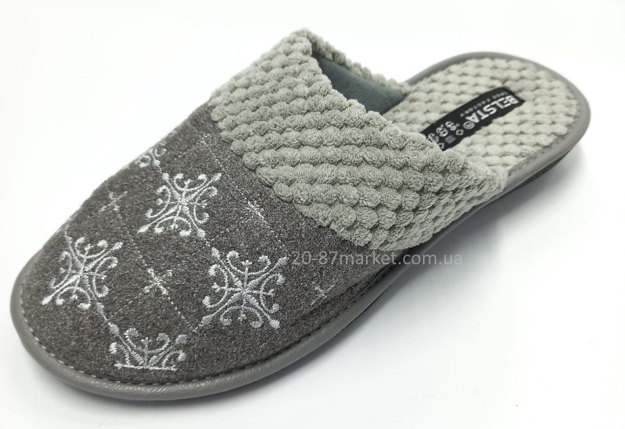 Тапки арт.31475 р.37-41 Belsta серый, "Снежинки"