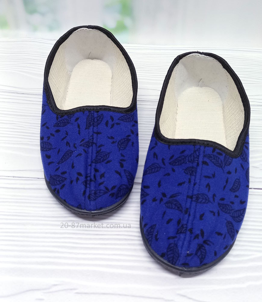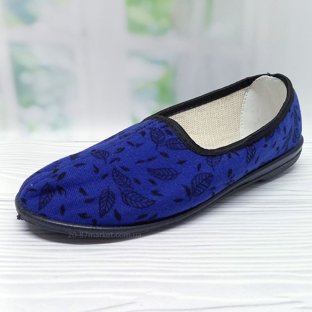 Женские текстильные тапочки с задником, синего цвета, текстильная стелька. Износостойкая подошва.