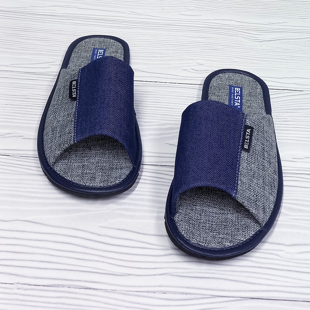 - Тапочки мужские открытые Белста арт.35515 серые с джинсовой вставкой подошва микропора
