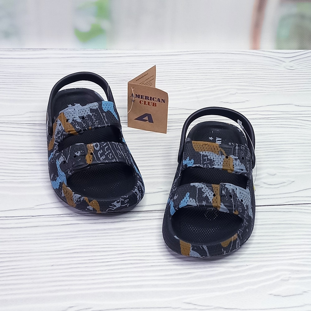 Зручні дитячі шльопанці для хлопчика від тм American Club. Класичний чорний колір, водостійкий матеріал — легко миються та швидко сохнуть. Підходять для дому, пляжу, саду або басейну.
