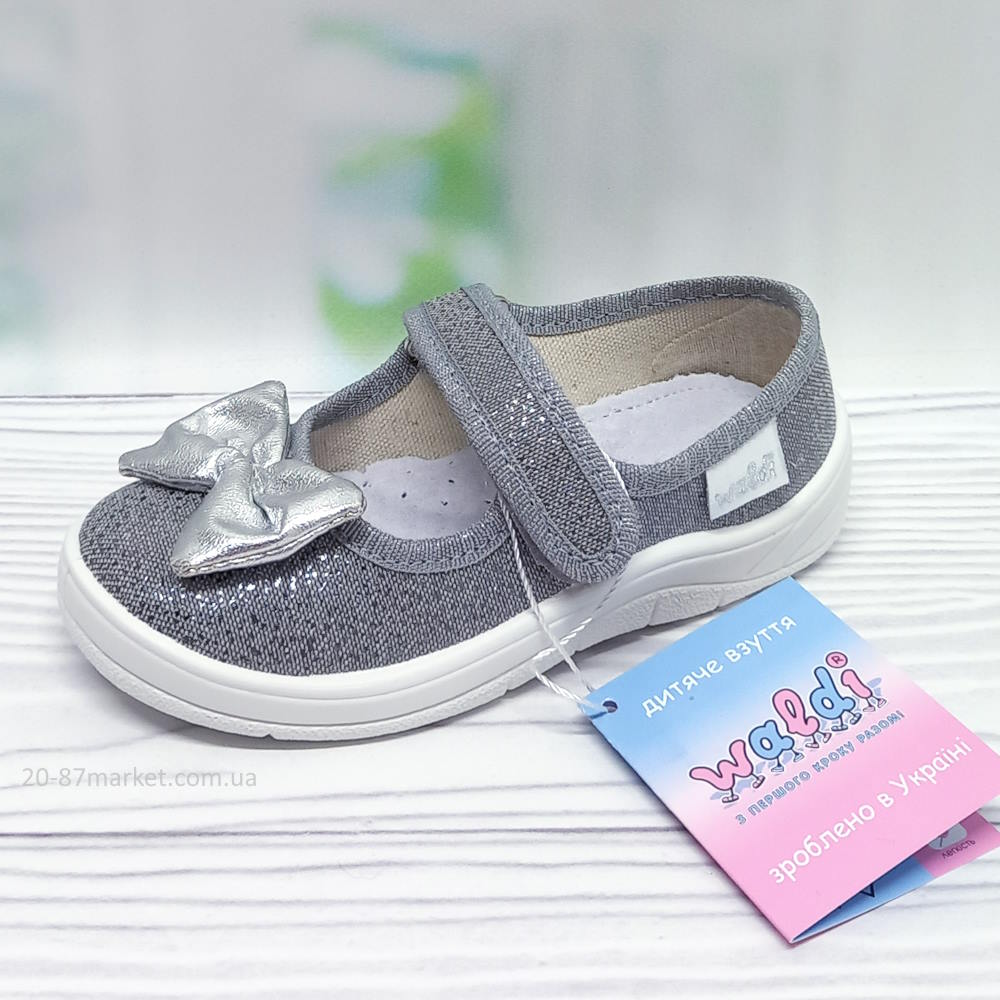 Дитячі капці для дівчинки арт.35268 р.24-30 Waldi сріблястий бант