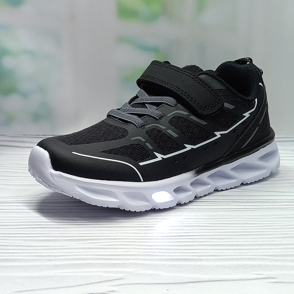 Текстильна устілка додає зручності, а легка підошва з піни забезпечує м’якість кроку та амортизацію. Світлодіодна підсвітка робить модель більш яскравою та цікавою, особливо під час руху.