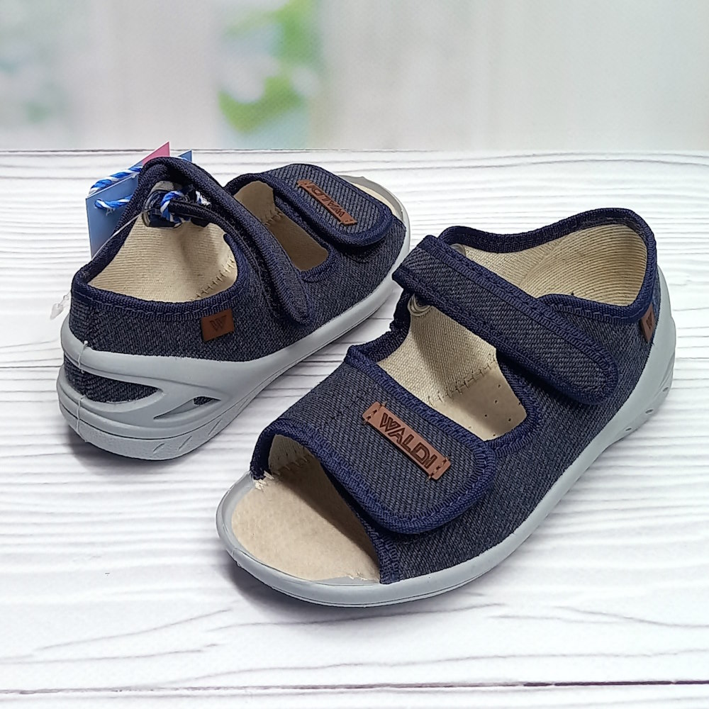Дитячі текстильні сандалії ТМ Waldi — легке та практичне взуття для хлопчика, що чудово підходить для теплої пори року. Сині сандалії виготовлені з повітропроникного текстилю та мають якісні застібки на липучках, які дозволяють точно регулювати ширину стопи. Відкритий носок забезпечує комфорт і вентиляцію, а закрита п’ята тримає стопу в правильному положенні. Гнучка ПВХ-підошва робить модель безпечною та зручною для щоденних прогулянок.