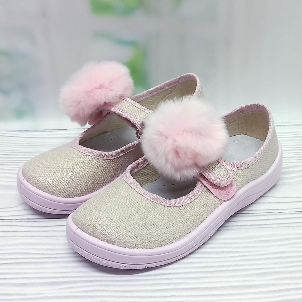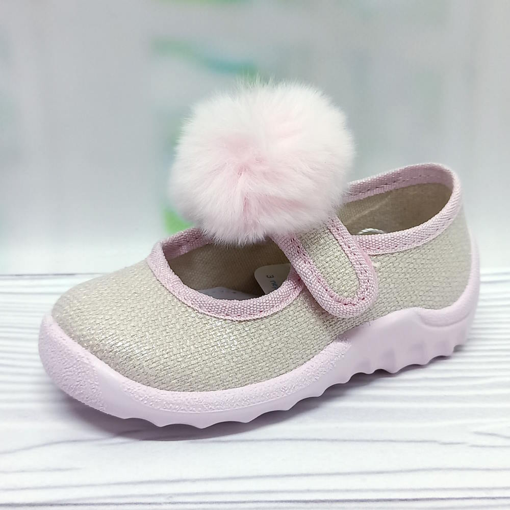 Домашні капці для дівчинки арт.35267 р.21-27 Waldi бежеві бубон