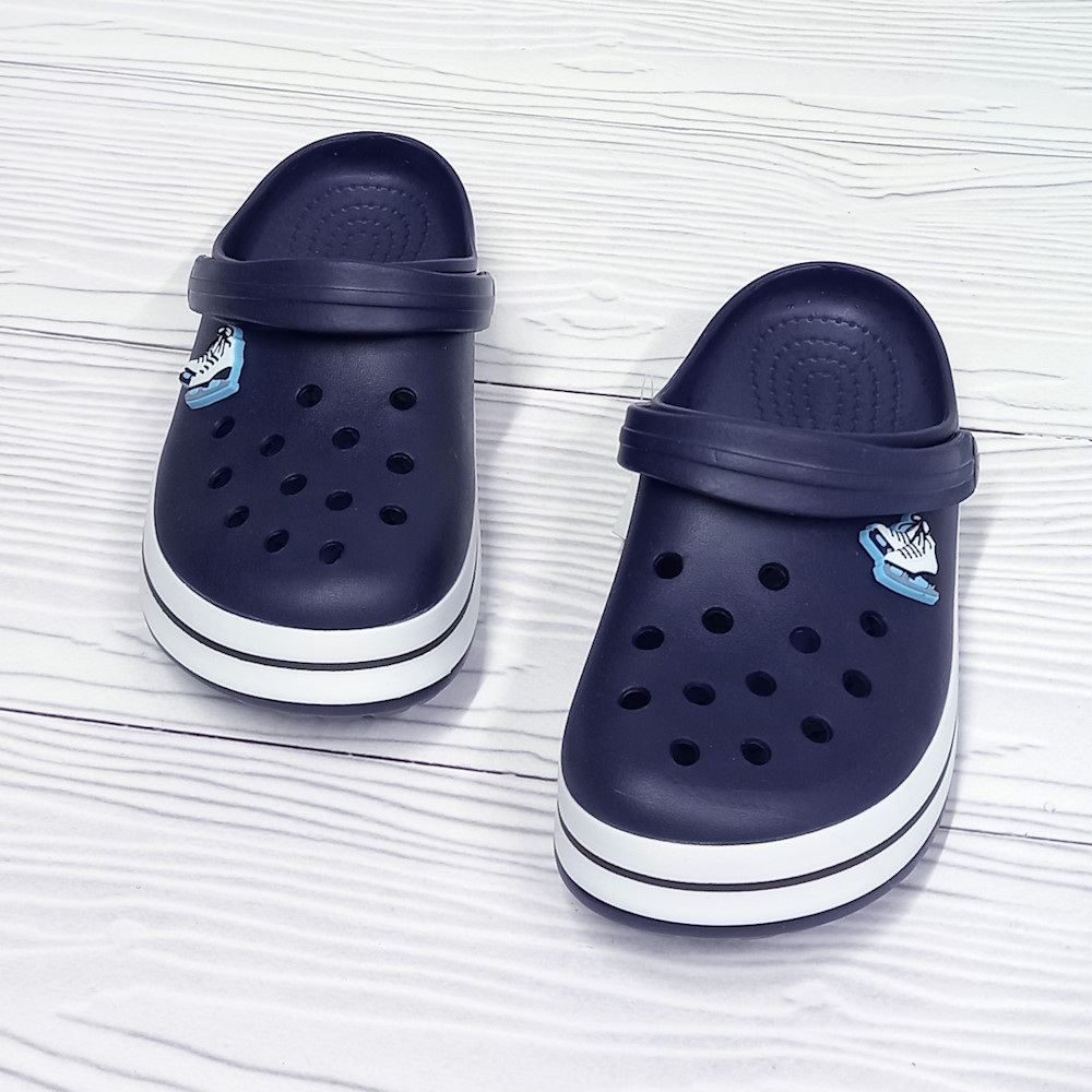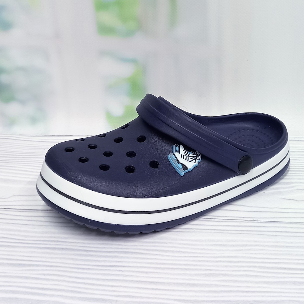 Дитячі крокси для хлопчика тм LuckLine, стильні джибітси. Перфорований верх покращує вентиляцію стопи, перекидний задник-лямка надійно фіксує взуття на нозі.