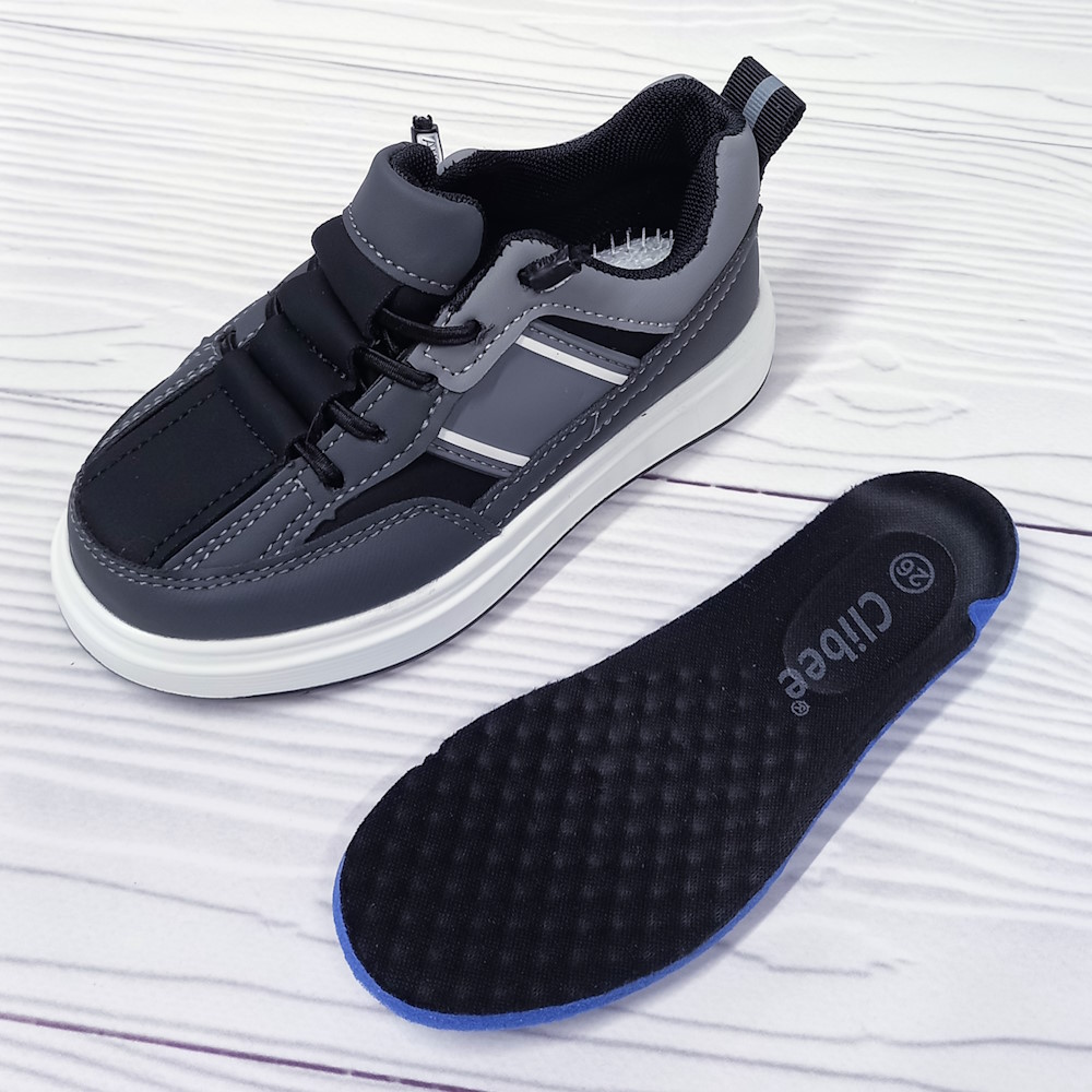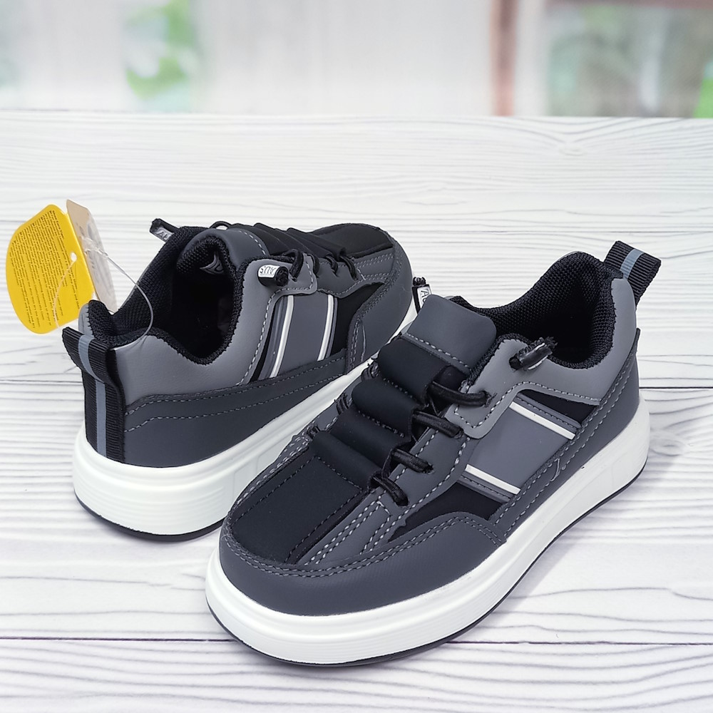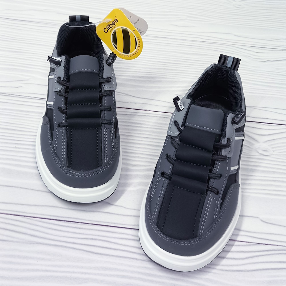 Сірі кросівки із застібкою на гумці-шнурівці, тм Clibee, для хлопчика, текстильна устілка.