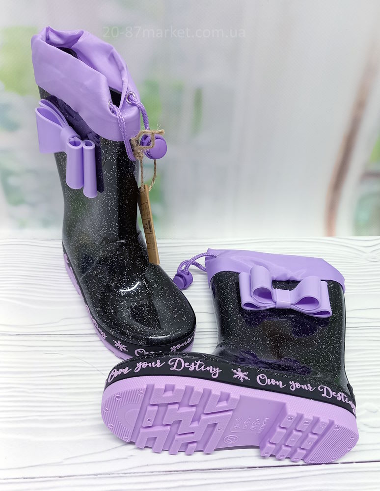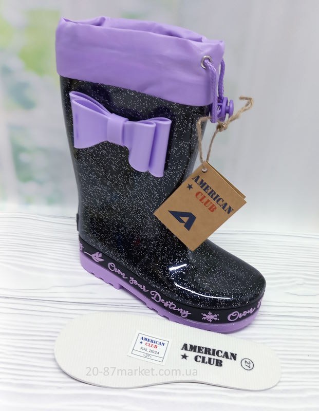 - Гумові чоботи для дівчинки, р.26-30, арт.34576, American Club, чорно-фіолетові, бантик