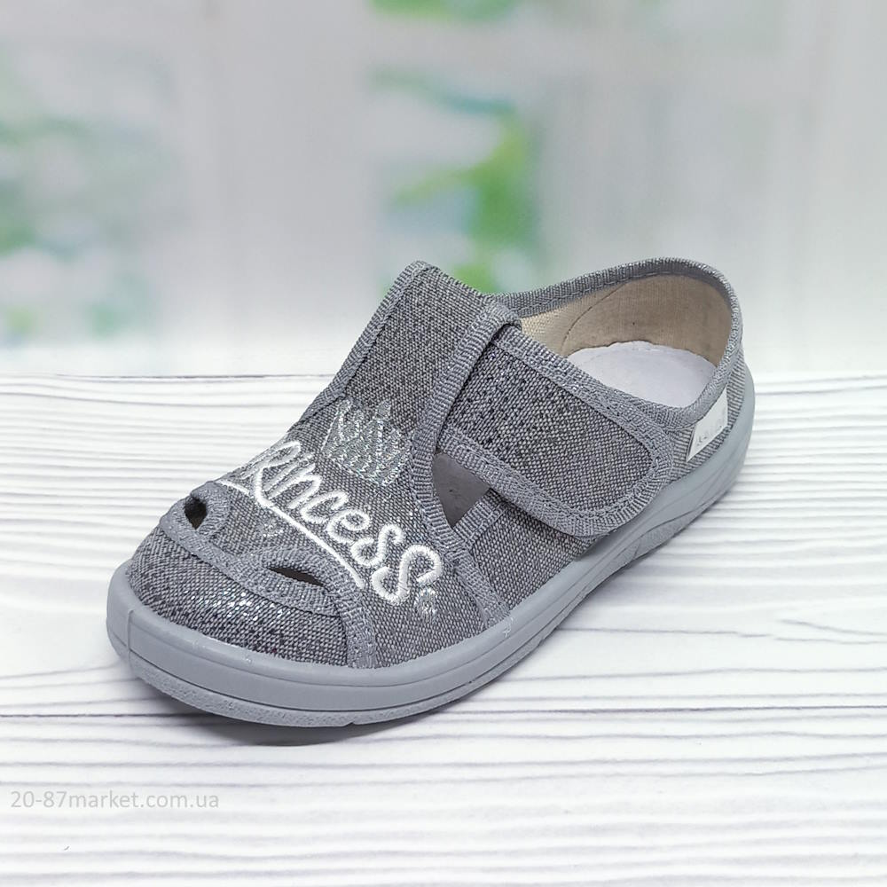 Капці для дівчинки арт.35269 р.24-30 Waldi сірі, вишивка "Princess"
