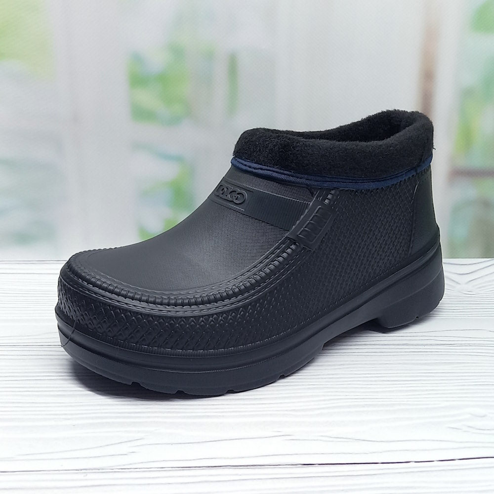 Чоловічі садові калоші ТМ Dago Style — практичний вибір для роботи на подвір’ї чи прогулянок у прохолодну погоду. Модель чорного кольору виготовлена з легкого та міцного матеріалу ЕВА, який не вбирає вологу, легко миється й швидко сохне. Усередині — утеплювач із штучного хутра, що забезпечує тепло та комфорт.