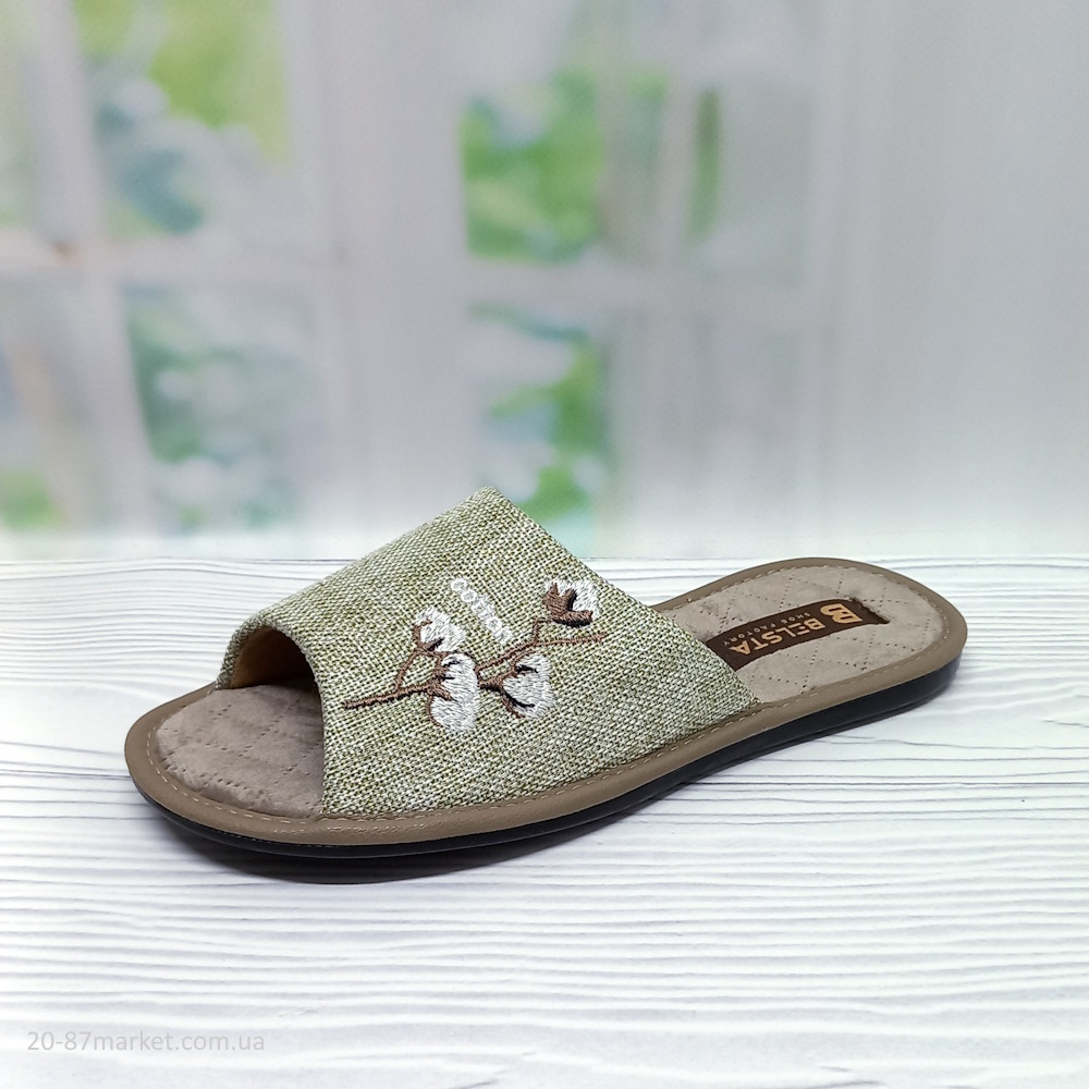 Жіночі кімнатні капці Белста арт.34755, р.36-41, св.оливкові, оздоблені вишивкою