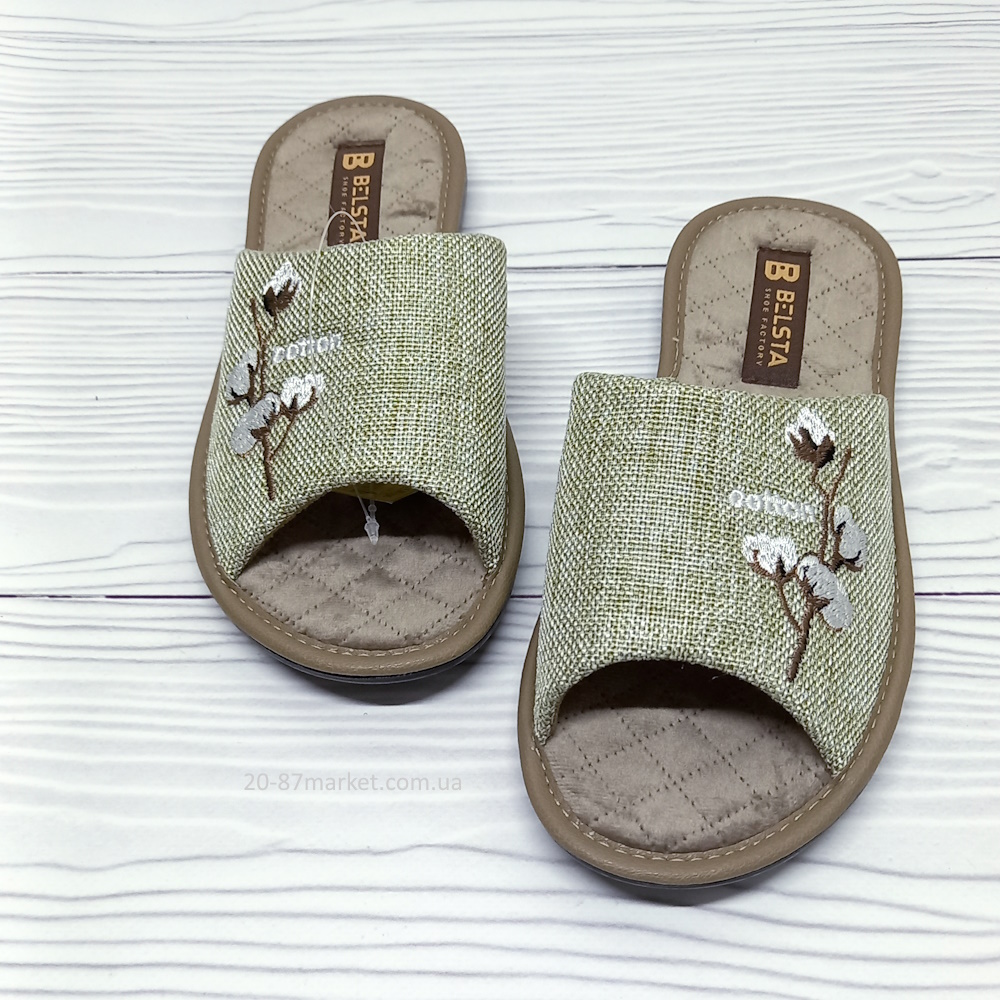 - Жіночі кімнатні капці Белста арт.34755, р.36-41, св.оливкові, оздоблені вишивкою