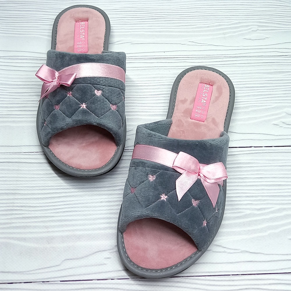 - Жіночі кімнатні капці відкриті Белста р.36-41 арт.35928 бантик атласний сірі