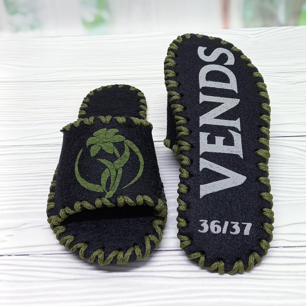 Жіночі фетрові капці тм Vends, чорного кольору. Підошва фетрова, не ковзає.
