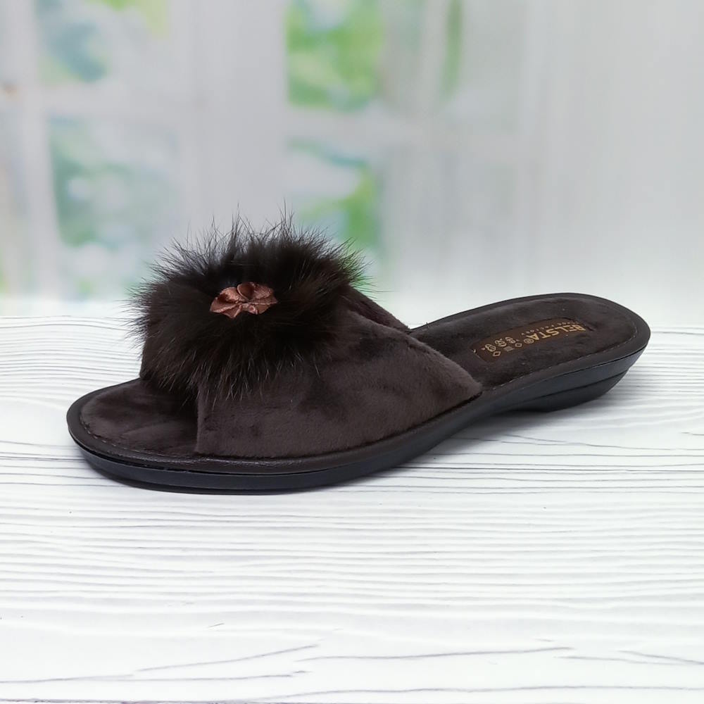 - Жіночі велюрові капці арт.35293 р.37-40 Белста коричневі прикрашені пушком