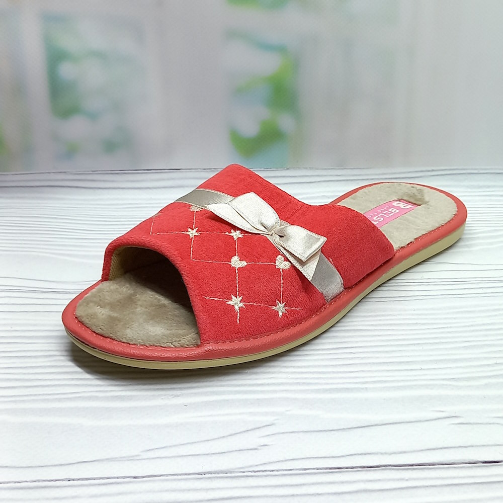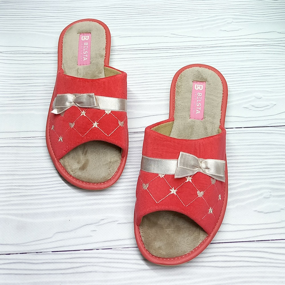 Жіночі велюрові капці Белста р.36-41 арт.36241 червоні атласний бантик