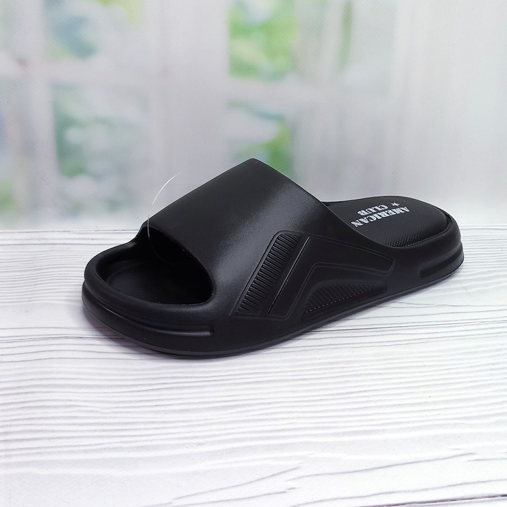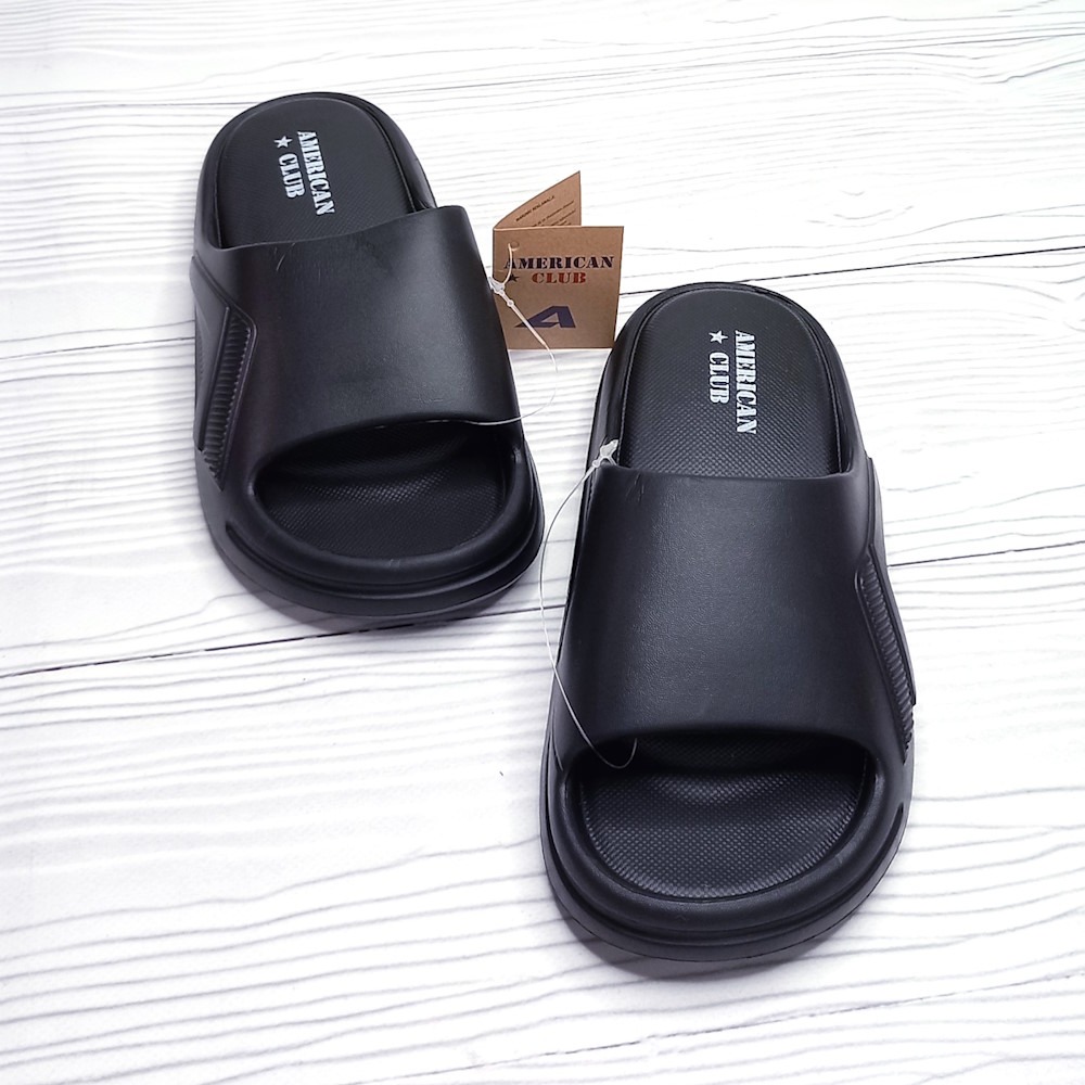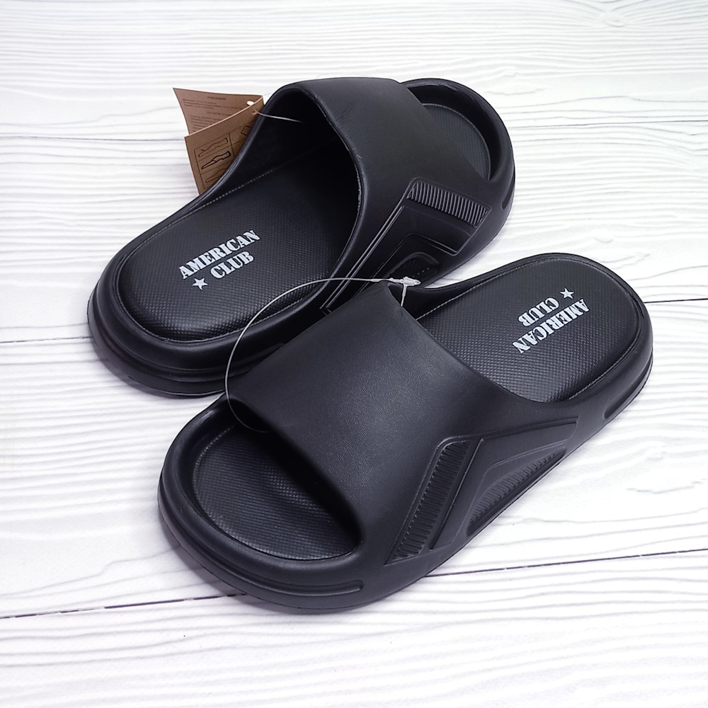 Чорні жіночі шльопанці ТМ American Club виготовлені з легкої та пружної ЕВА піни. Забезпечують зручну посадку, легко миються та швидко сохнуть. Відмінно підійдуть для будинку, пляжу, басейну або повсякденного носіння в теплу пору року.