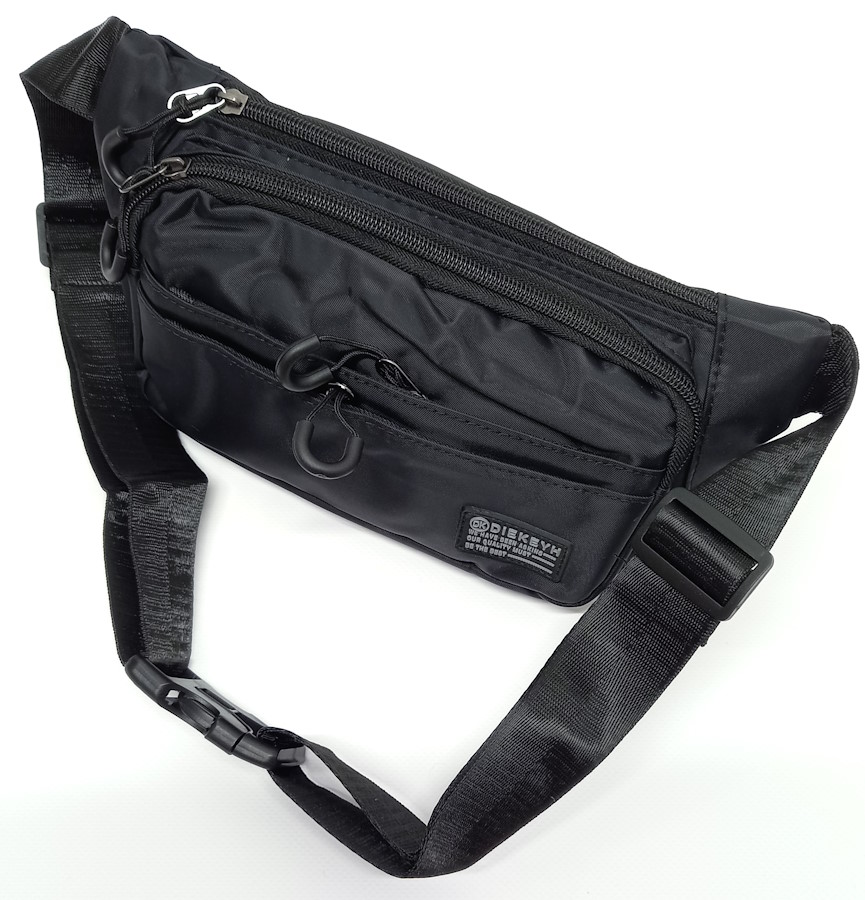 Сумка на пояс выполнена из плотного полиэстера. Сумка имеет несколько отделений на застёжке молния.