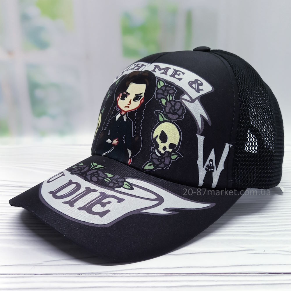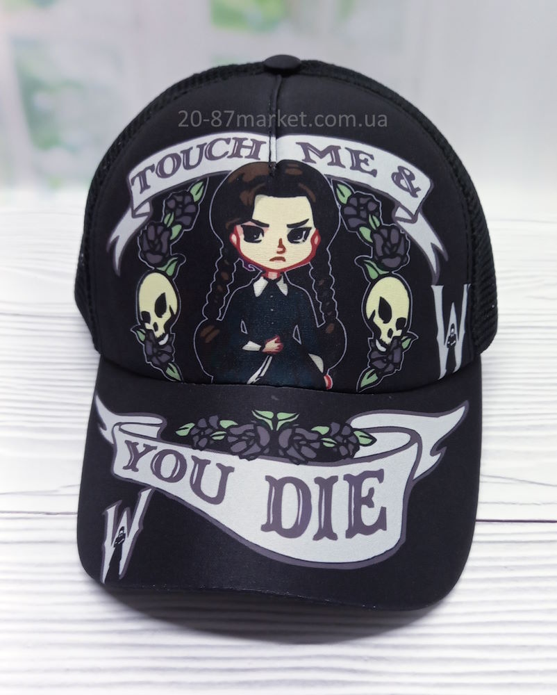 - Бейсболка детская с сеткой, арт.34121 р.52-55, чёрный, принт: "touch me"