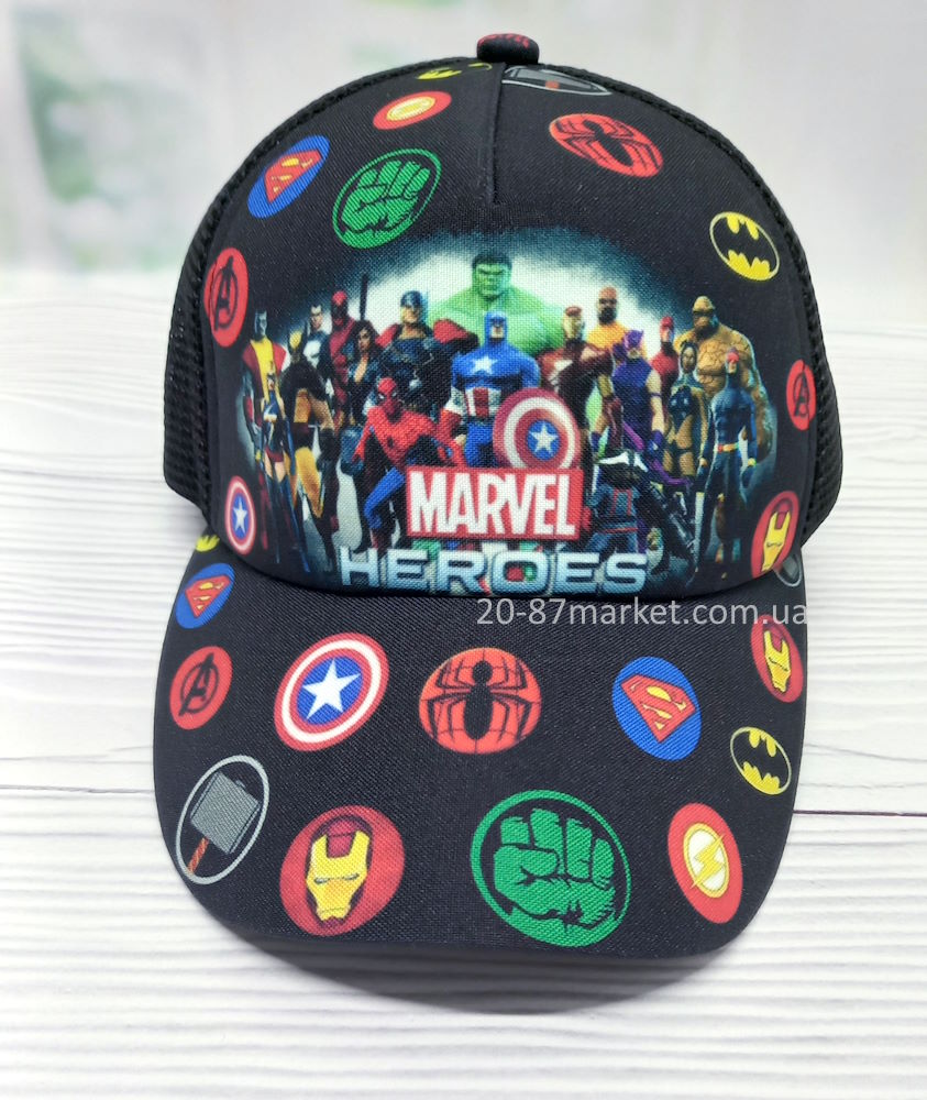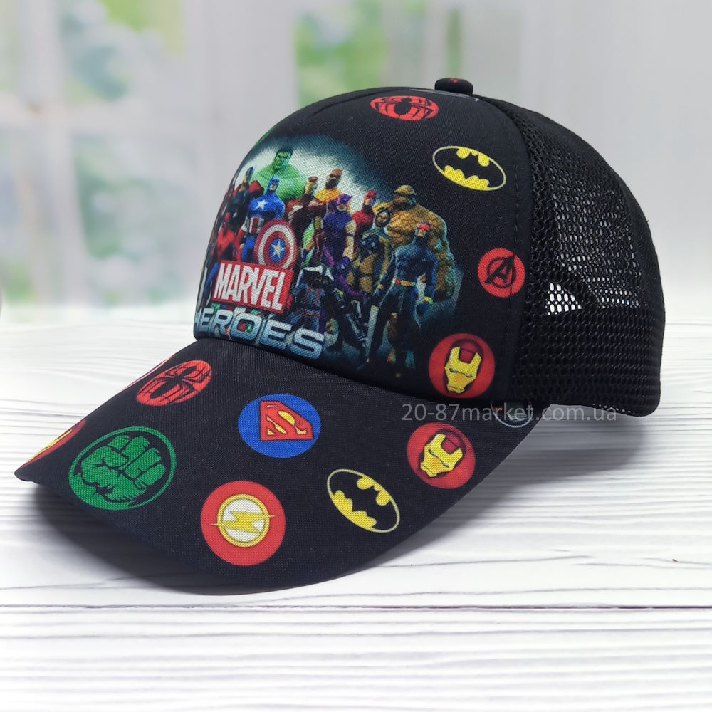 - Бейсболка детская с сеткой, арт.34144 р.52-55, чёрный, принт: "Супергерои"