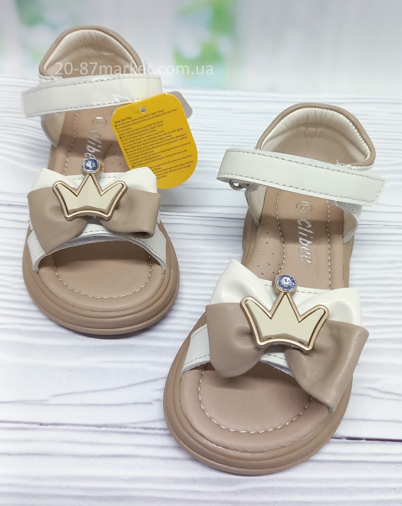 Босоножки для девочки р.26-31 арт.34013, Clibee, бежевые, корона
