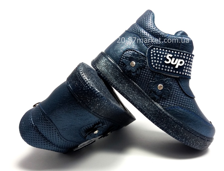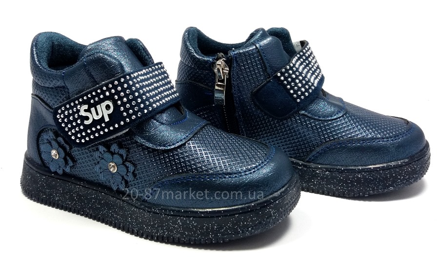 Ботинки демисезонные для девочки синего цвета, на липучке и молнии. Стелька, супинатор. Нескользящая подошва