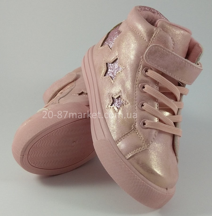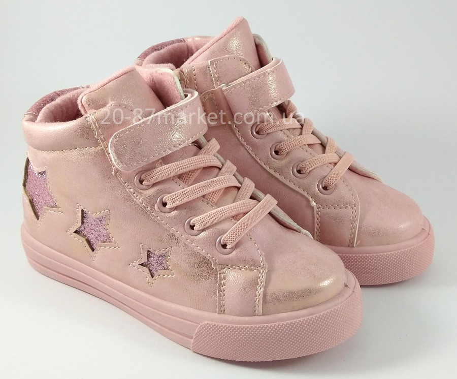 Ботинки для девочки демисезонные, с боку звёзды. Стелька.