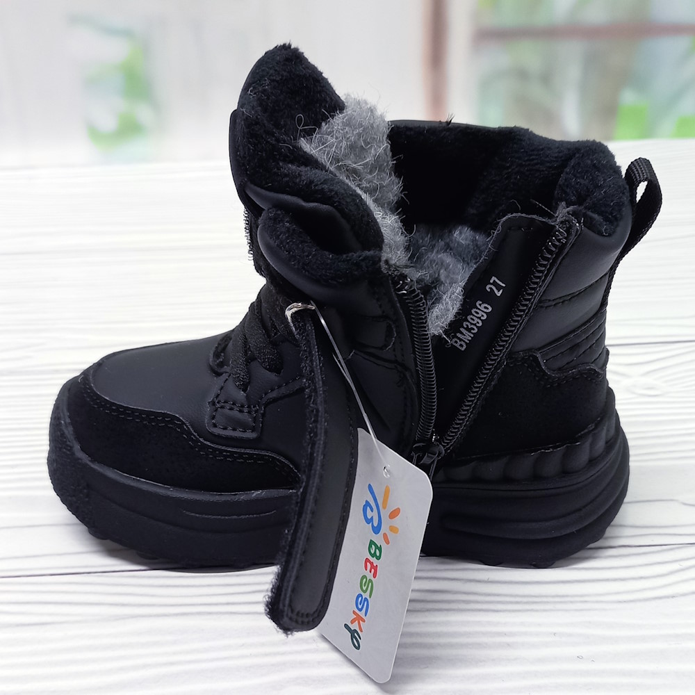 Ботинки для мальчика р.27-32 Bessky арт.34984 застёжки на липучках и замке чёрные