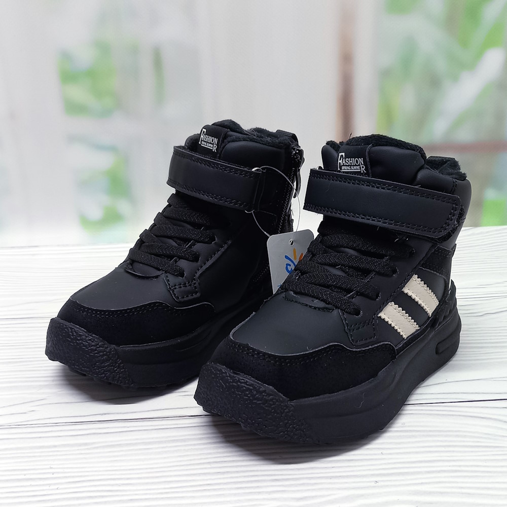 - Ботинки для мальчика р.27-32 Bessky арт.34984 застёжки на липучках и замке чёрные