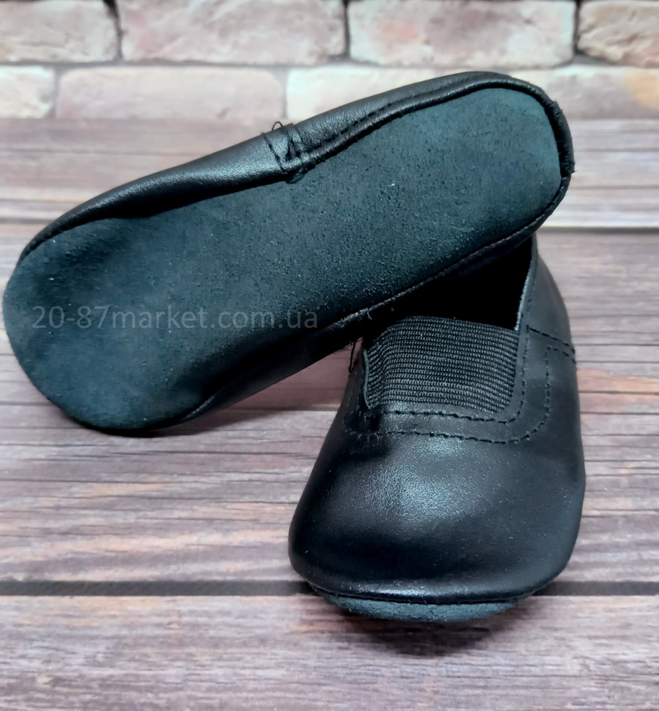 Чешки из натуральной кожи, чёрные, универсальные (подходят мальчикам и девочкам). Удобные, хорошо сидят на ноге, чешки отлично подходят для занятий спортом, гимнастикой, танцами, хореографией и детских утреников.