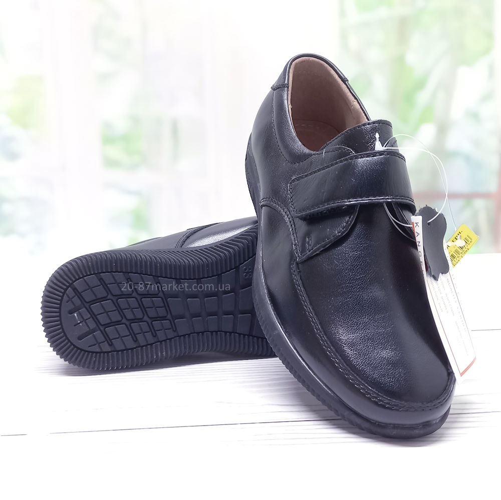 Детские кожаные туфли для мальчика, чёрные, арт.27904, р.32-35, KANGFU