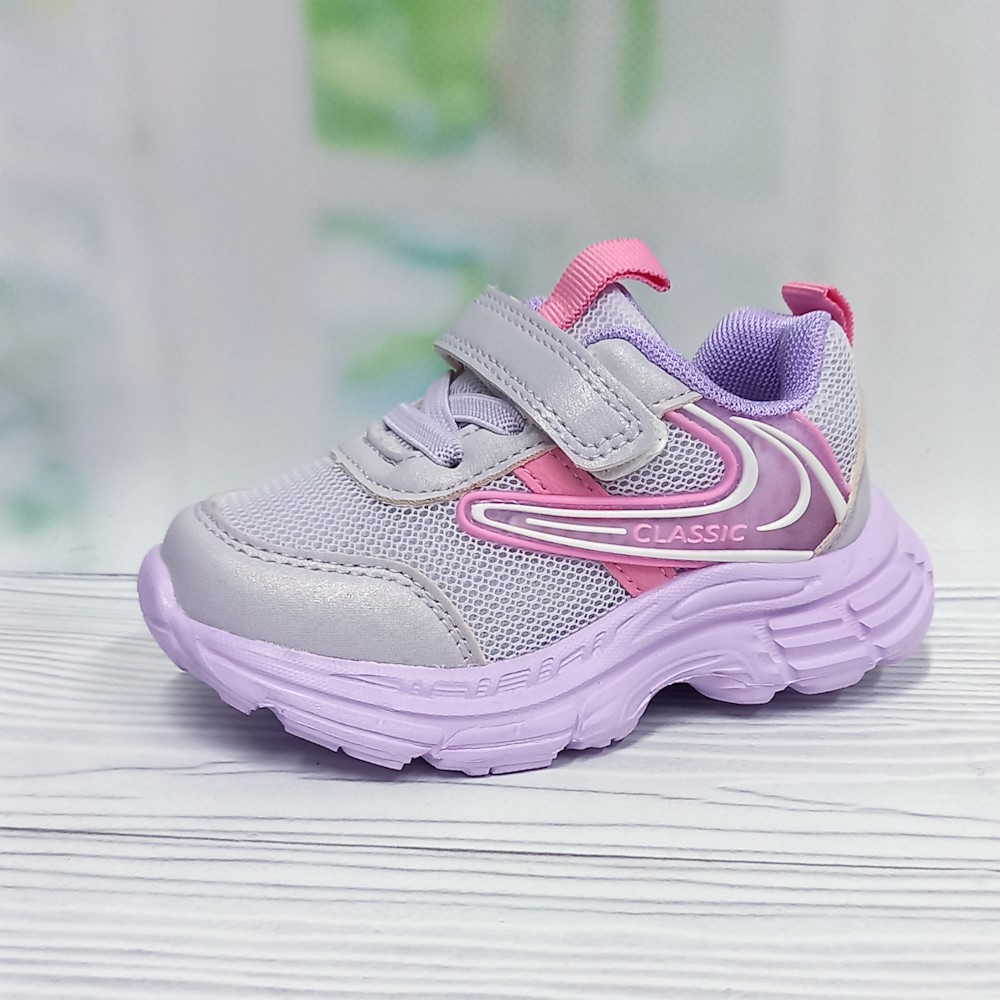 👟 Детские кроссовки для девочки ТМ Flip — стильная и практичная обувь на лето. Комбинация серого и фиолетового цветов делает модель яркой и запоминающейся. Воздухопроницаемый текстильный верх сохраняет комфорт даже в жаркие дни. Липучки позволяют легко обувать и снимать кроссовки. Кожаная стелька с супинатором помогает правильно распределить нагрузку на стопу. Лёгкая фиолетовая подошва из пены снижает утомляемость при активных прогулках.