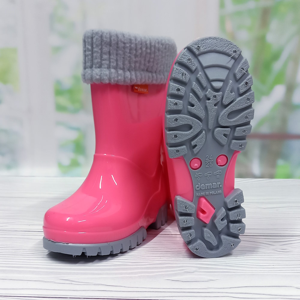 Детские резиновые сапоги р.20-27 арт.35485 Demar с утеплителем розовые