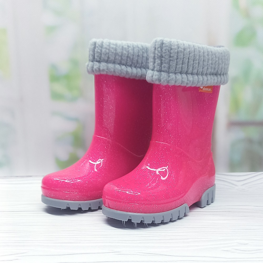 - Детские резиновые сапоги р.22-25 арт.35781 Demar для девочки розовые с утеплителем