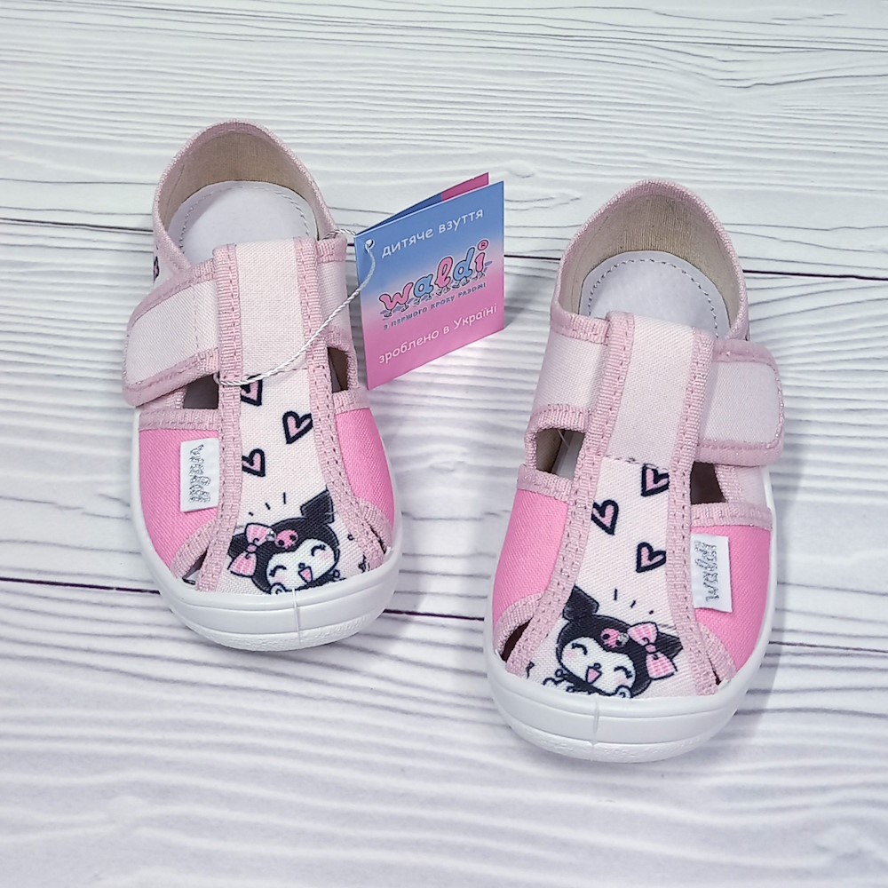 Детские тапочки для девочки, тм Waldi, застёжки на качественных липучках, стильный принт из мульфильма, твёрдый задник, кожаная стелька, супинатор, гибкая подошва белого цвета.