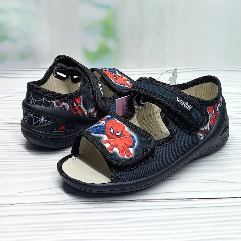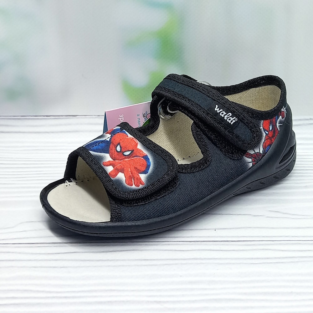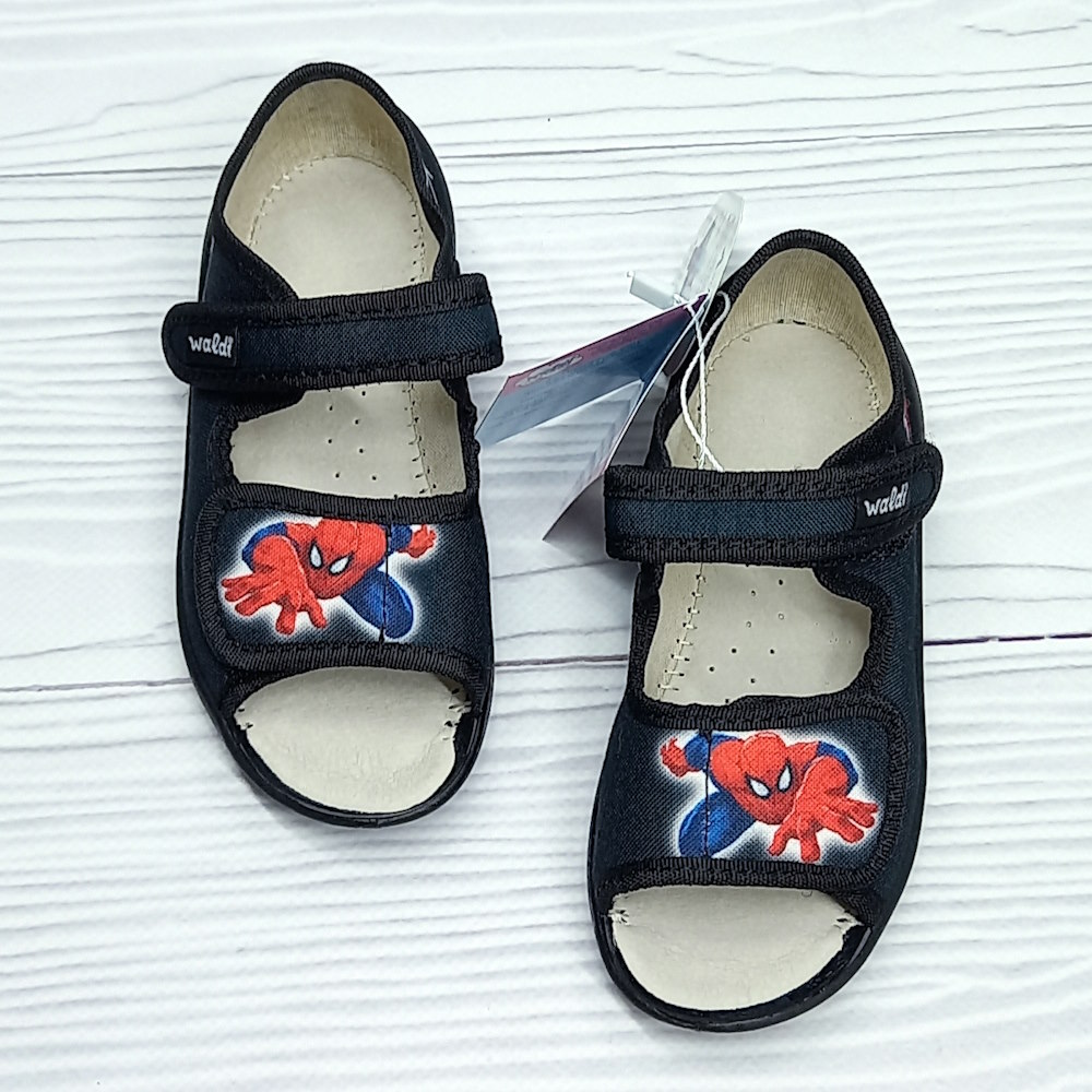 Детские текстильные сандалии ТМ Waldi для мальчика — удобная и практичная обувь для активных прогулок и повседневной носки. Модель выполнена в чёрном цвете и украшена стильным принтом с супергероем, который обязательно понравится ребёнку.