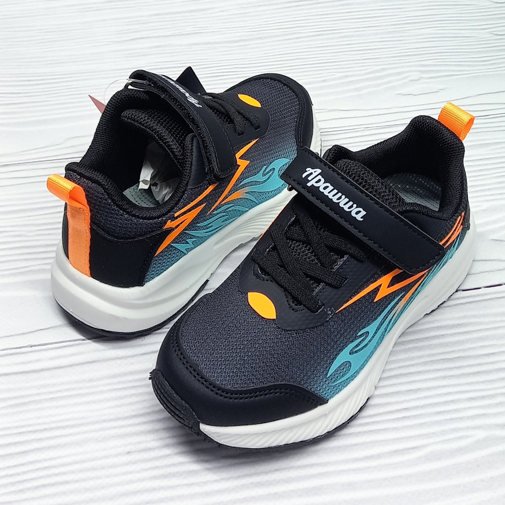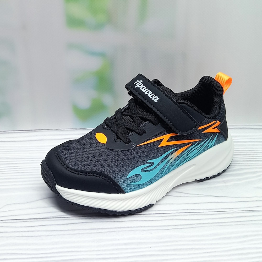Кроссовки детские для мальчика р.26-31 Apawwa арт.35755 чёрно-оранжевые