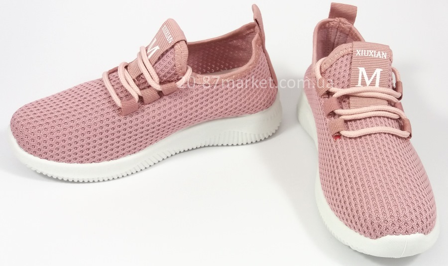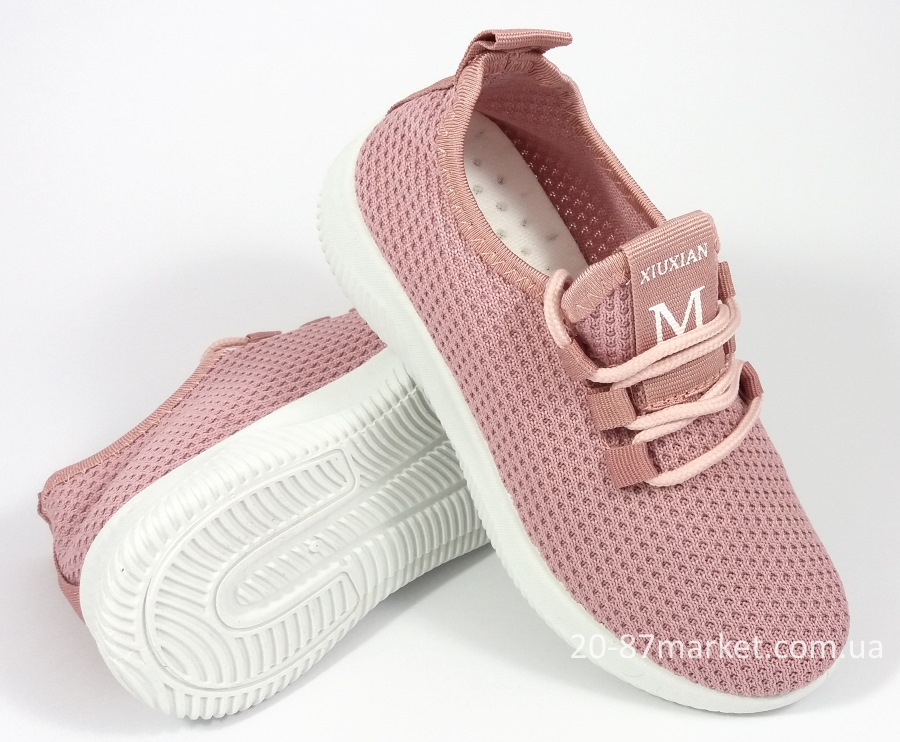 Летние кроссовки розового цвета в сеточку для девочки, на шнурках, подошва белая.