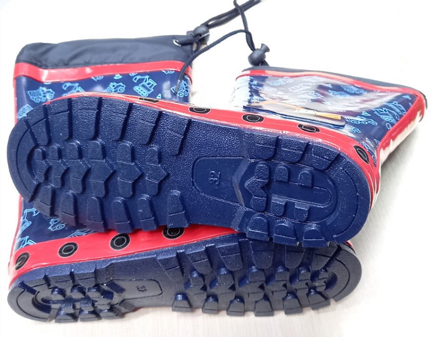 Синие резиновые сапоги для мальчика. Нескользкая резиновая подошва.